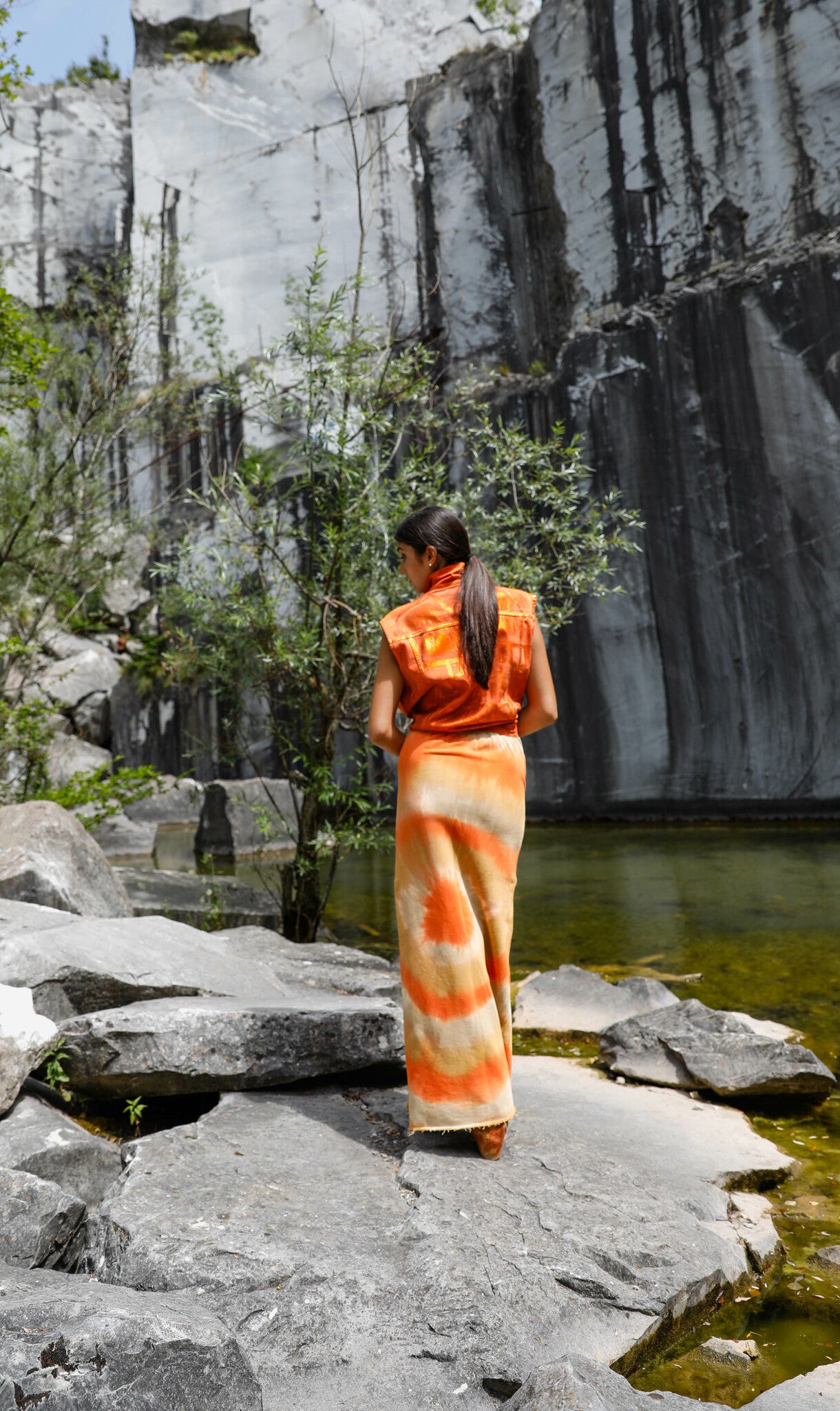 New Dye Maxi Skirt - ORANGE TIE DYE