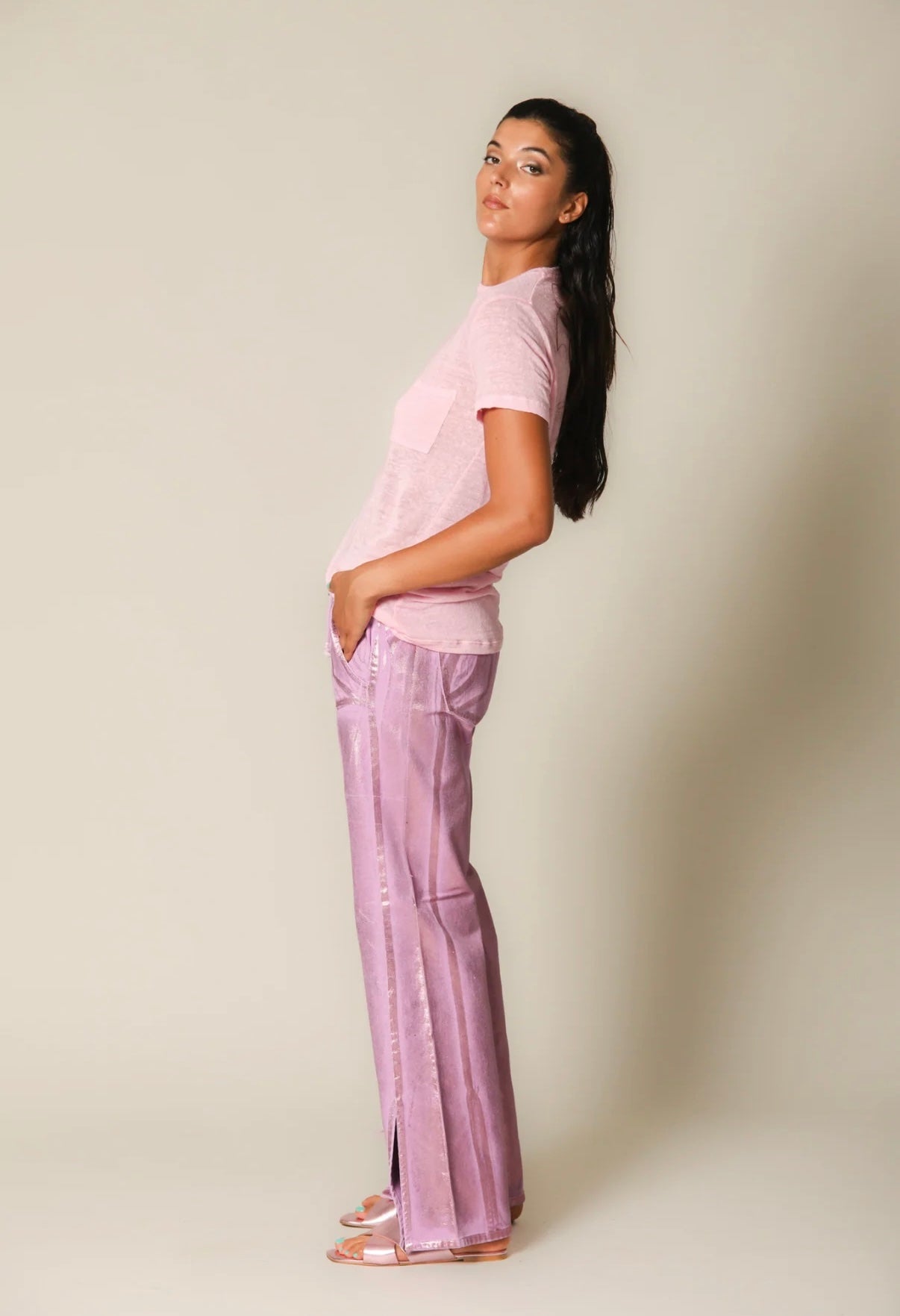 Our burn out linen round neck tee with a tiny pocket on the side. Perfect for your everyday looks.
