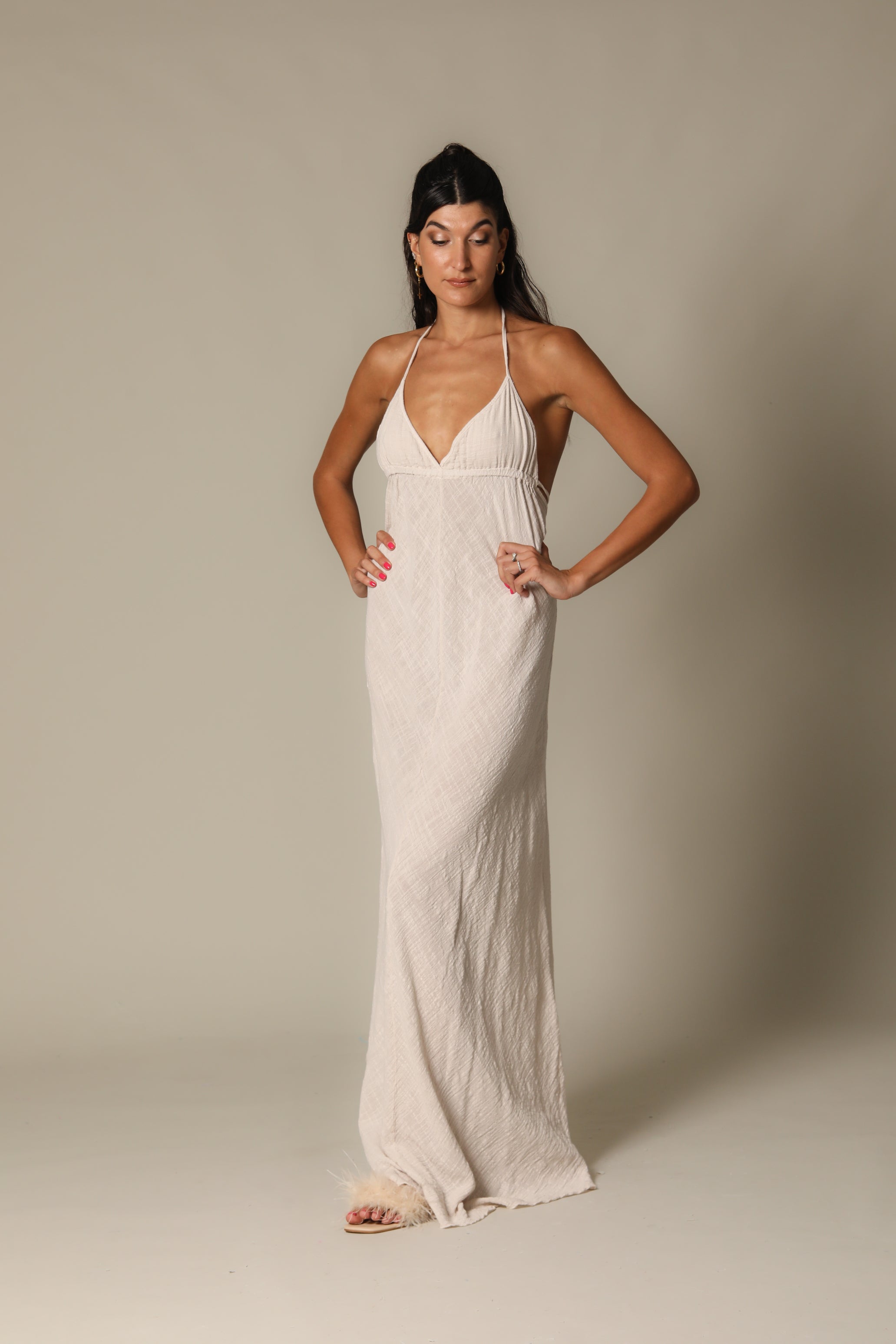The most flattering maxi dress. Adjustable on the back and behind the neck and featuring a V neckline on both back and front.