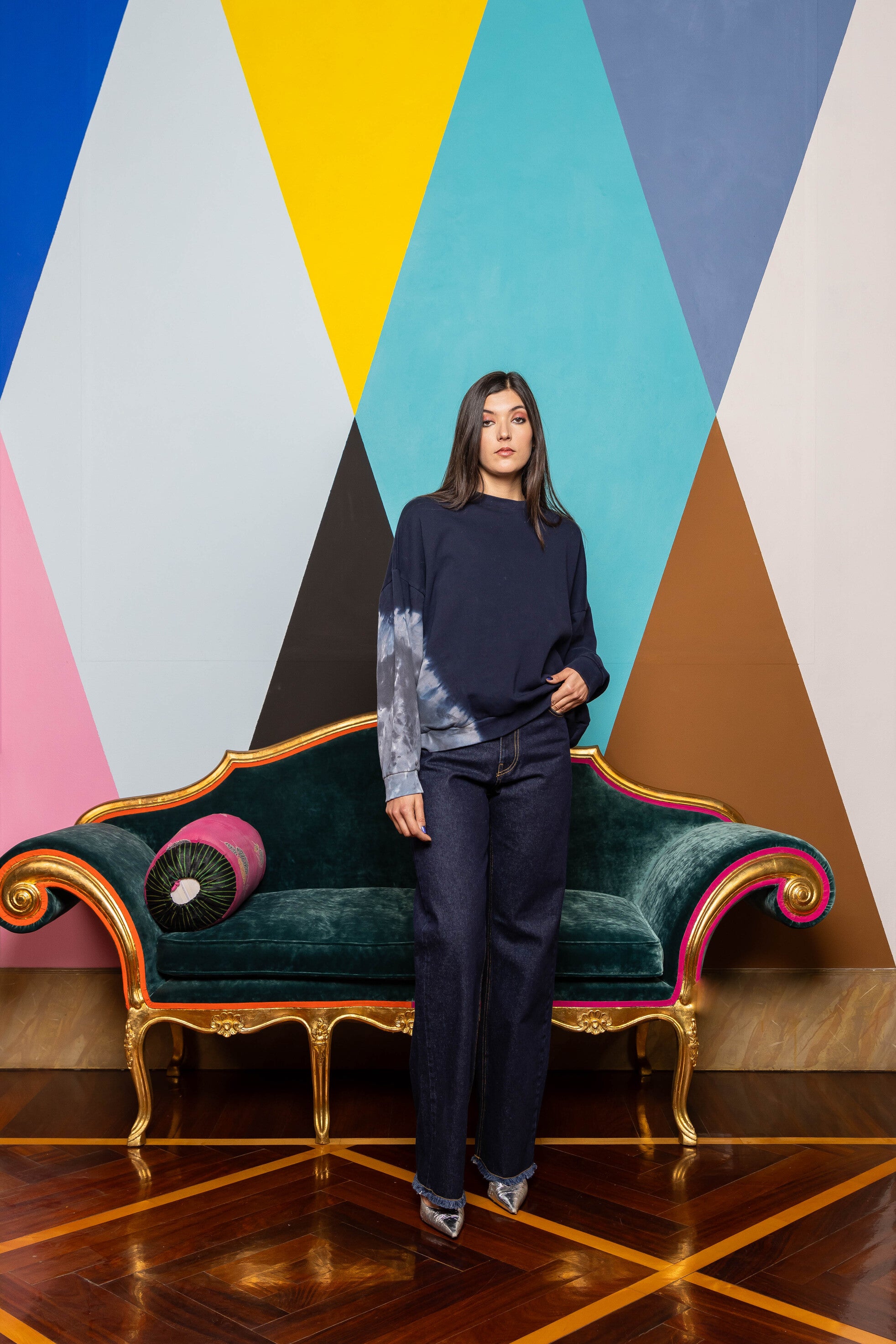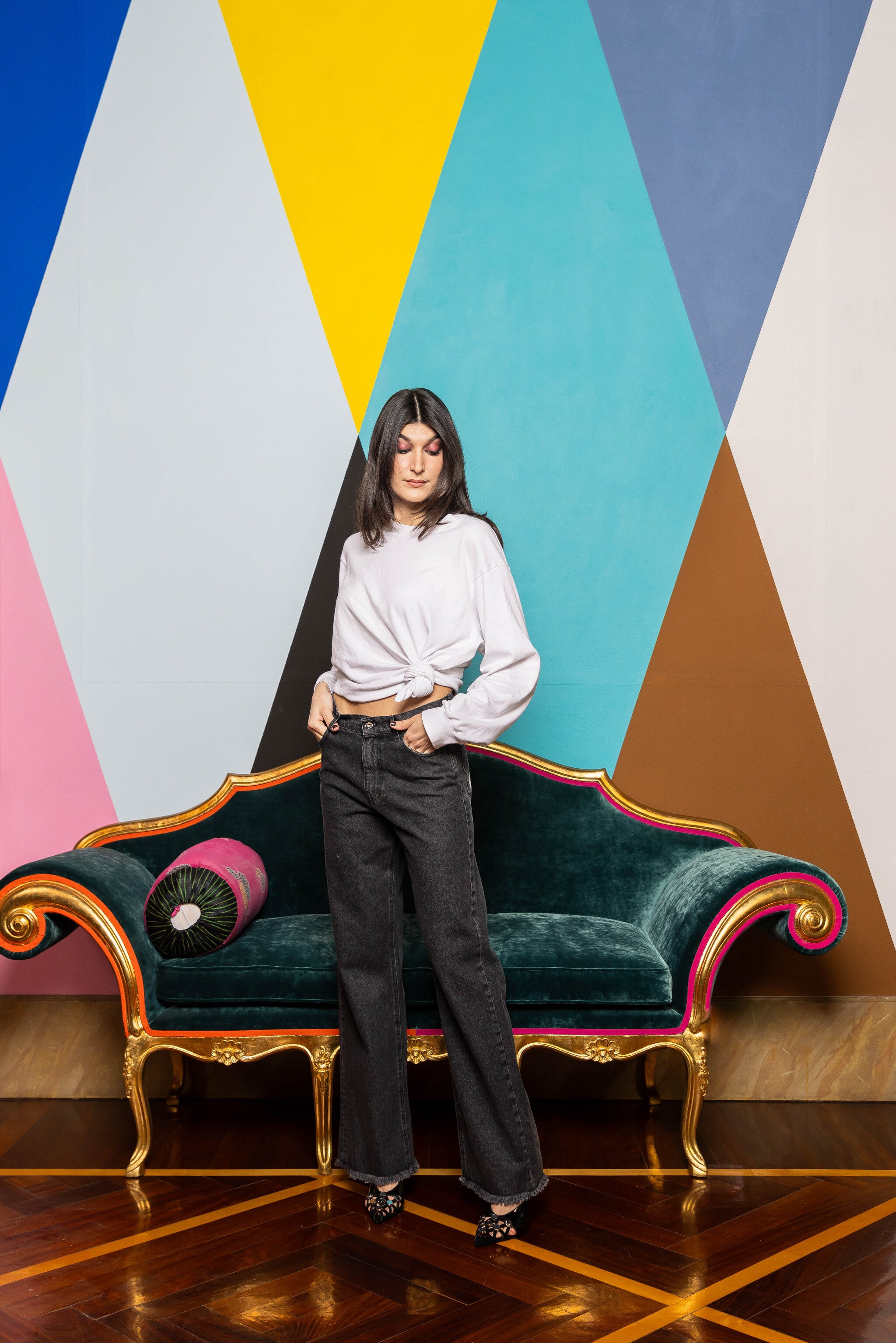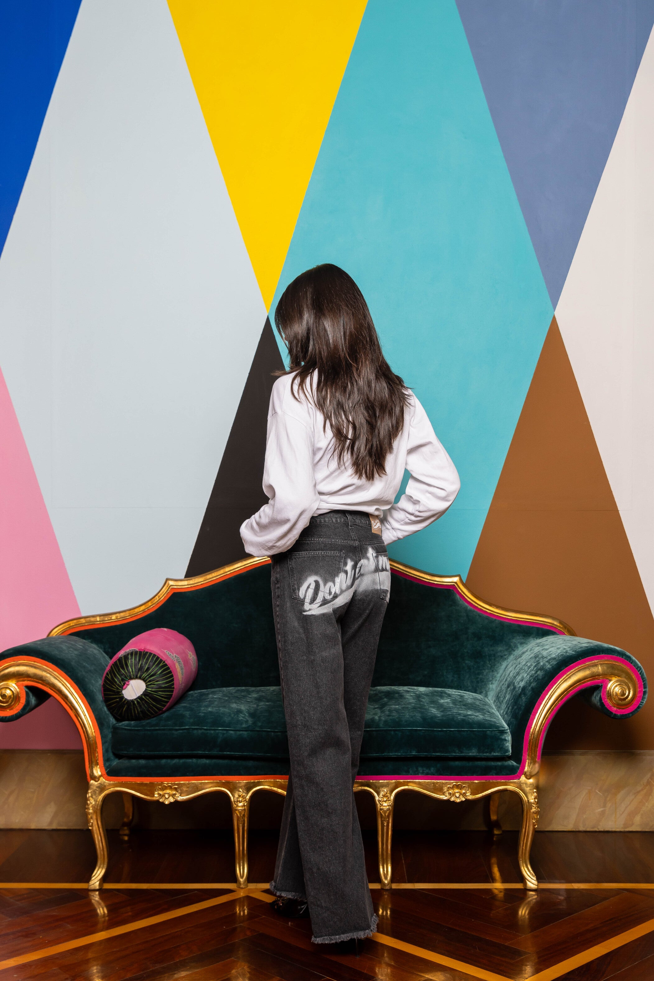 We just elevated your high waist straight leg trousers thanks to our new hand made graffiti. For the bold ones only, raw hem detailing at the end.